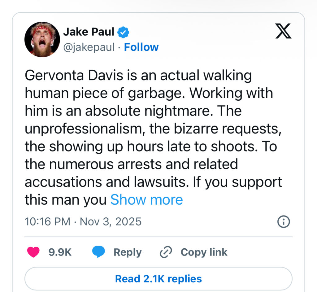 Jake Paul had some choice comments on the situation. He let the world know his feelings. Jape said, “Gervonta Davis is an actual walking human piece of garbage” and continued on to say, “I didn’t want to give this woman abuser a platform to grow his fans and to grow his bank account. My company champions women”. Jake clearly not wanting to continue to engage or fight Gervonta and go on due to differenes in their behaviors outside of the ring. Jake Paul still is ready and willing and waiting for his new fight, which is projected to be coming sometime before the end of the year.