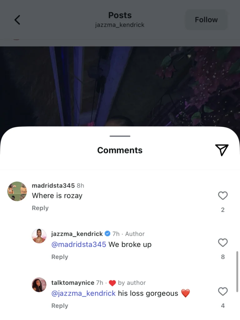 The 38-year-old model revealed the split directly in an Instagram comment. When a fan asked her, “Where is Rozay?” she simply replied: “We broke up.” Another user chimed in with, “His loss gorgeous,” which Kendrick liked, making her feelings clear.