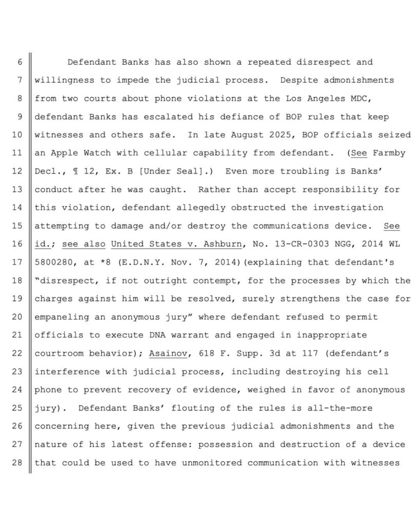 The motion specifically cites the August discovery of the Apple Watch and raises concerns about potential witness tampering. Prosecutors argue that the device could have been used to communicate with associates outside the facility, potentially influencing or intimidating witnesses tied to the case.